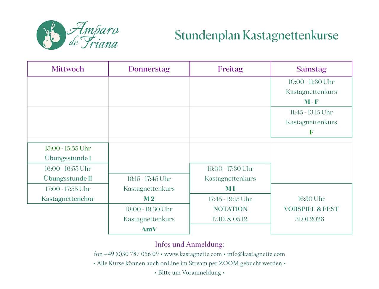 We always meet on Wednesdays from 17:00 to 17:55 hrs and are happy to welcome castanets players who do not come to our classes. We charge a fee of 9 € for each rehearsal. Participation is free of charge for students in my castanet groups. The aim of this choir is to rehearse and perform monophonic and polyphonic concert pieces for castanets.