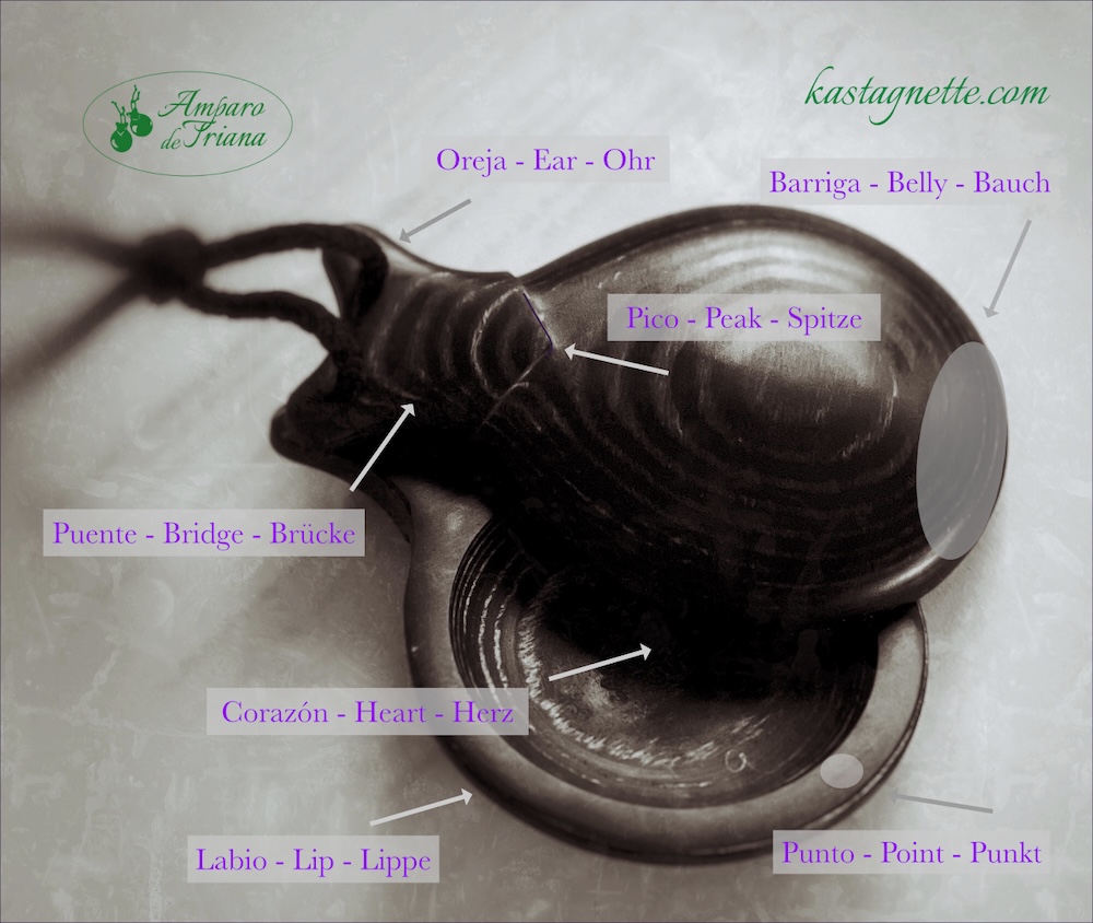 Y aquí están los nombres de las diferentes partes de las castañuelas:
